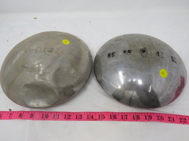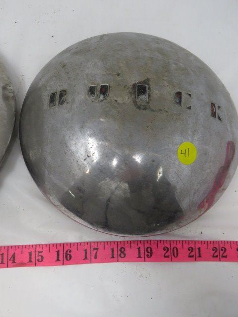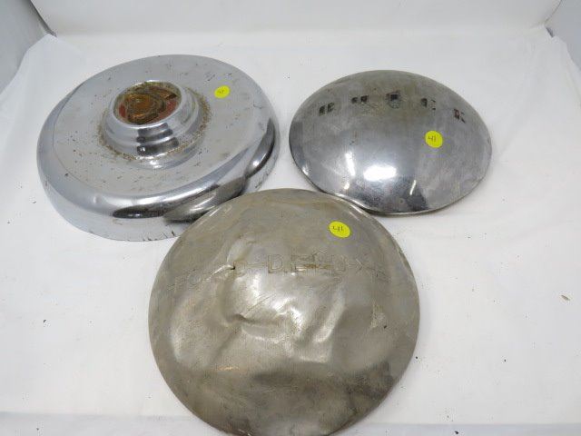 LOT OF 3 METAL HUBCAPS (FORD DELUXE, BUICK, ETC…)