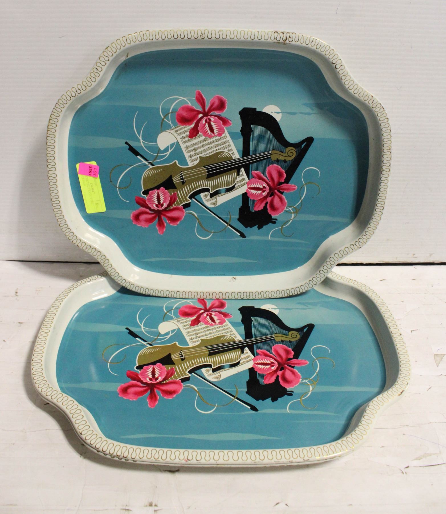 LOT OF 3 METAL TRAYS WITH VIOLIN DESIGN