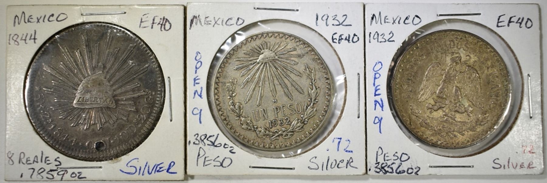 1844 8 REALE XF & 2 1932 UN PESO OPEN 9 XF. ESTIMATE $100 - $125.