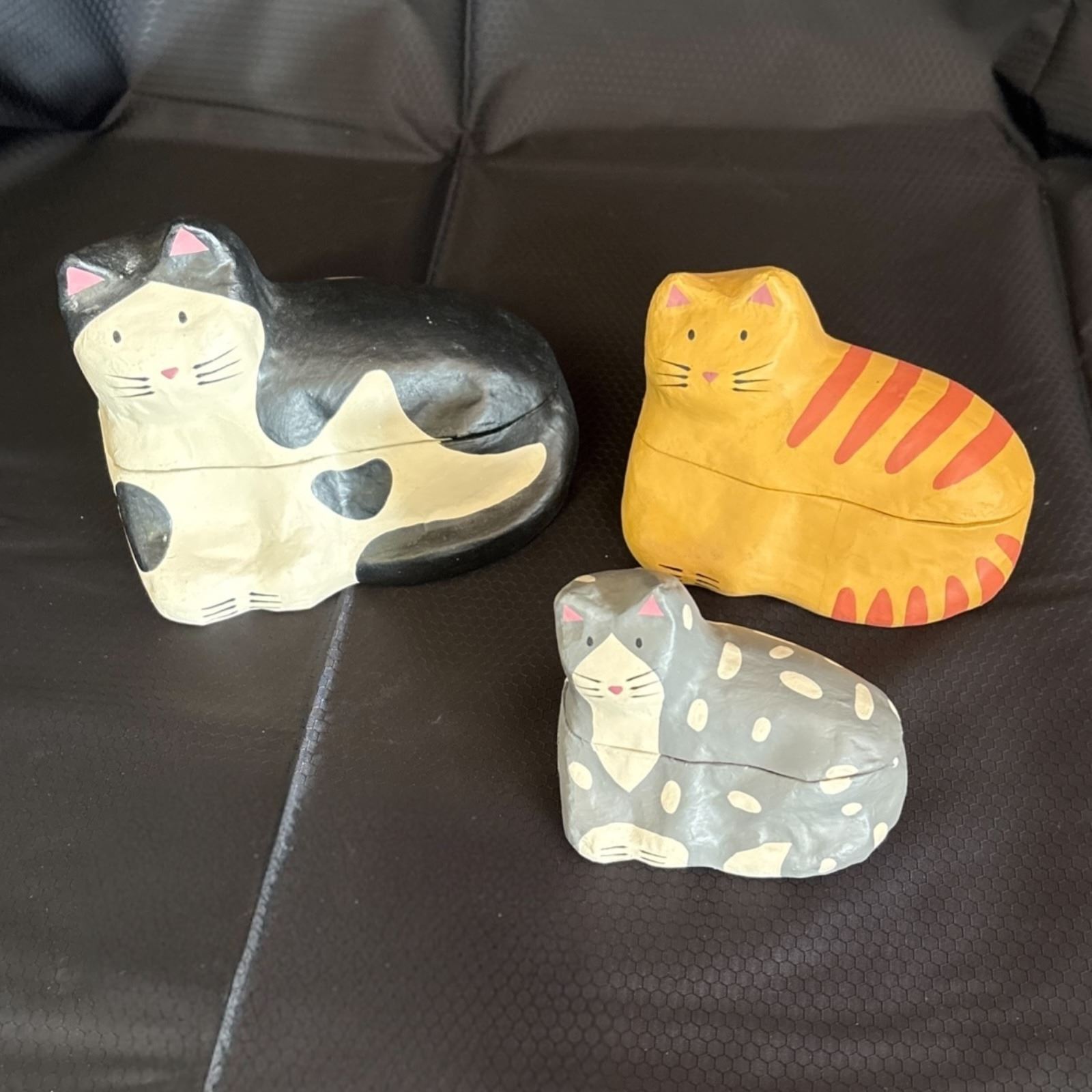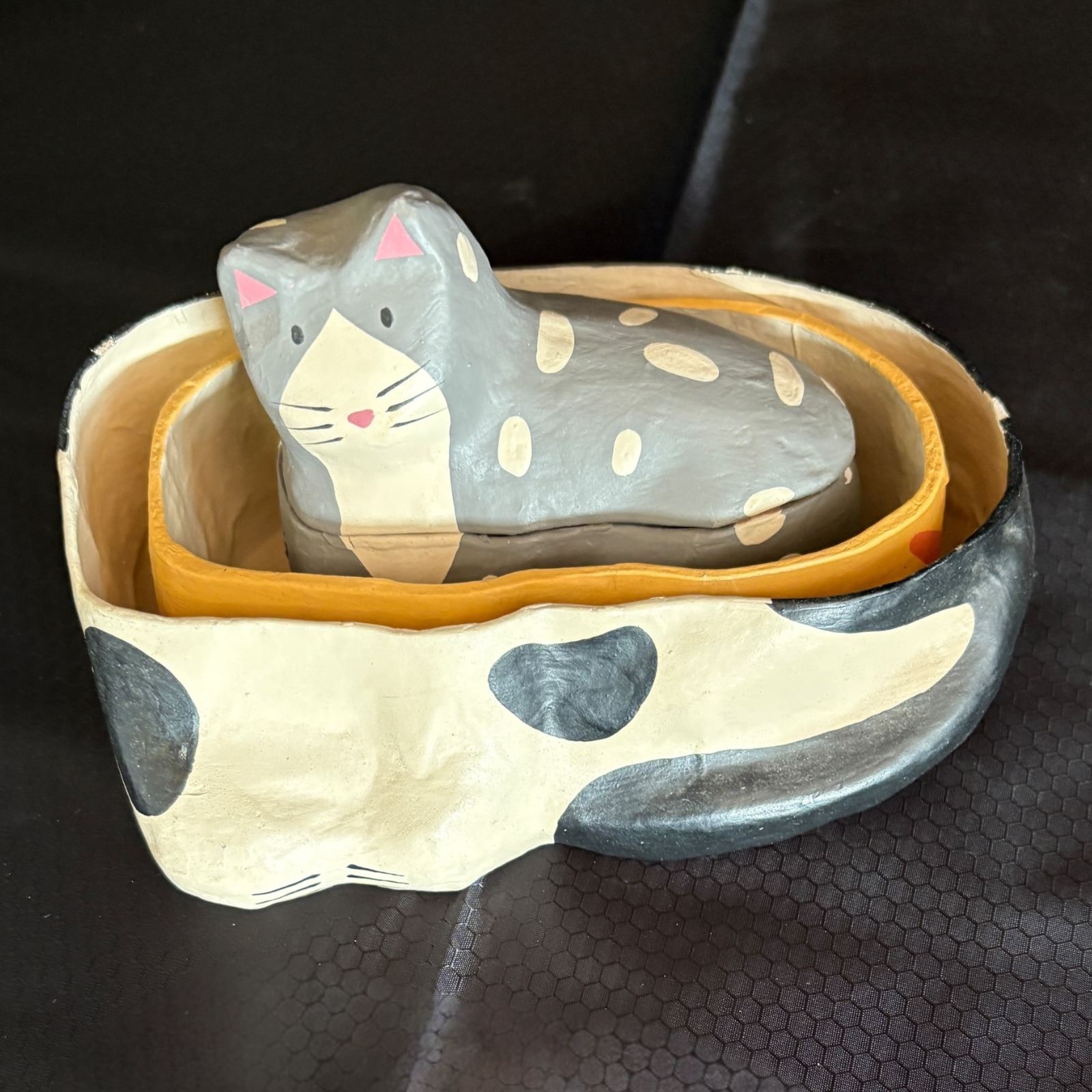 Sculpture plus Hallmark paper mache nesting cats set 5 in., doll NEW in open box 7 in.