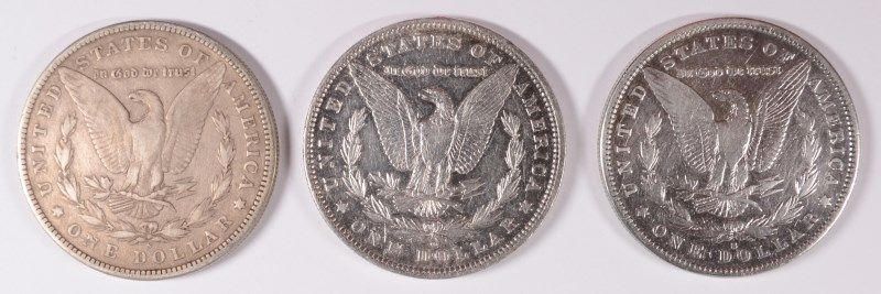 LOT OF 3 MORGAN DOLLARS 1880-O, 1883-S, 1898-S (CLEANED)