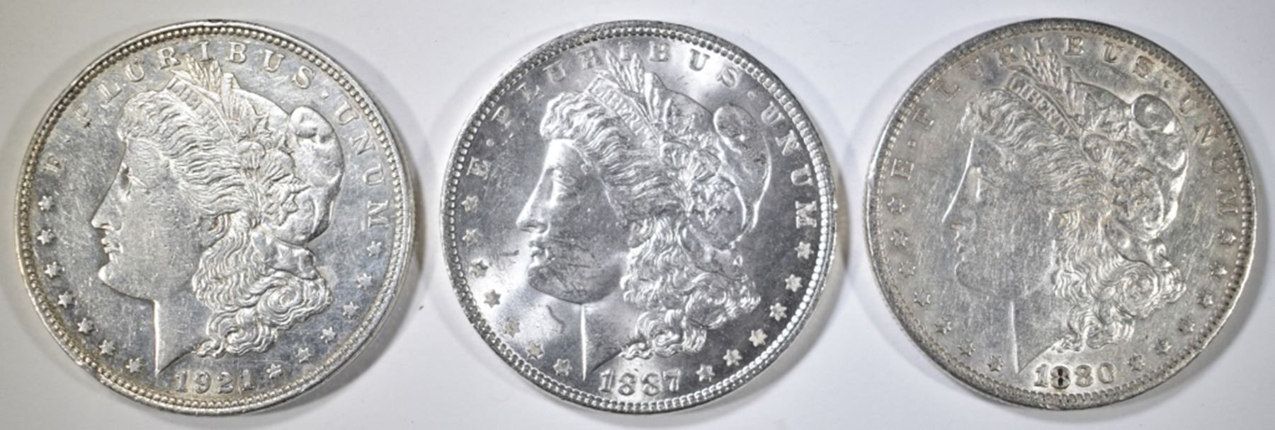1887 CH BU, 1880-O BU, 1921 BU. ESTIMATE $200 - $225.
