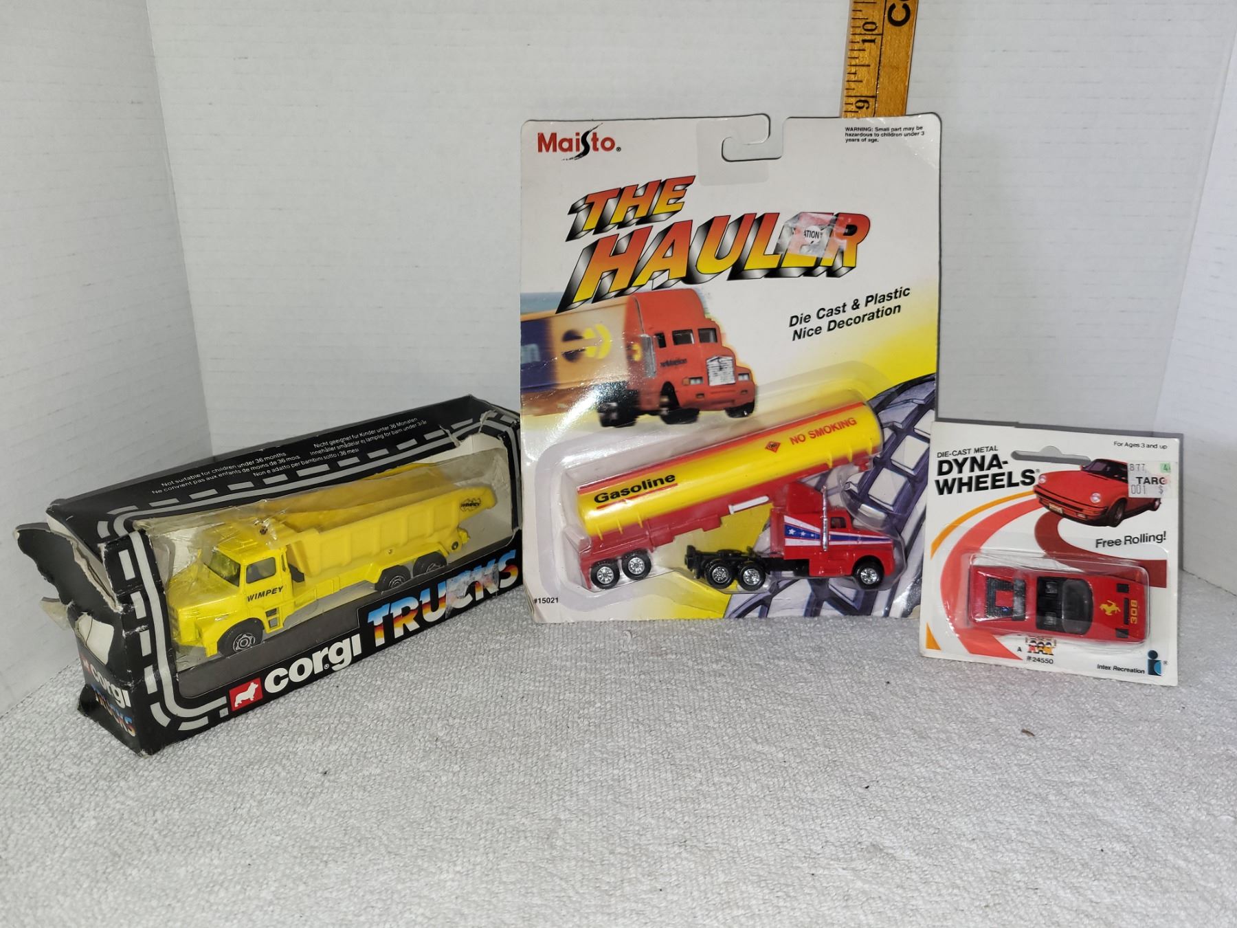 LOT OF 3 NEW DIE CAST TOYS CORGI TRUCK, DYNA WHEELS, MAISTO