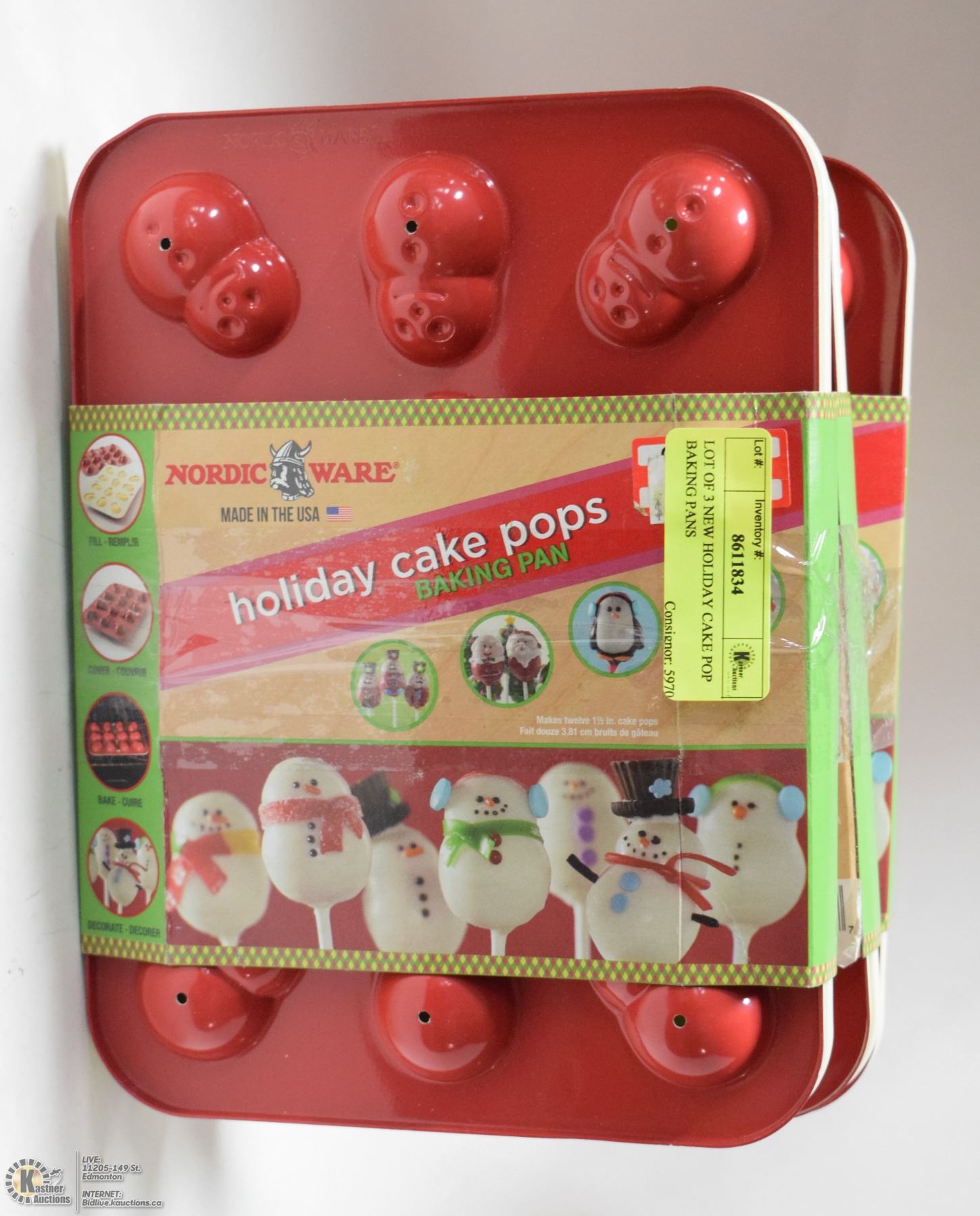 LOT OF 3 NEW HOLIDAY CAKE POP BAKING PANS