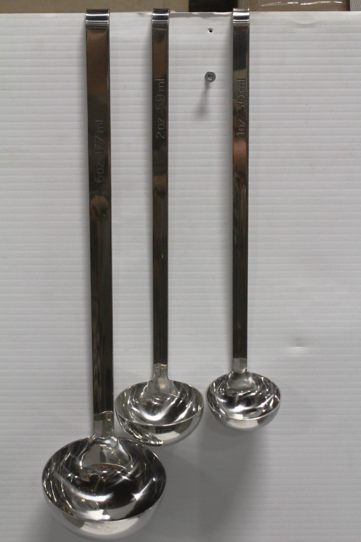 LADLES. 8OZ, 2OZ & 1OZ. JR 3228, 3222, 3221 **ALL ITEMS MUST BE REMOVED BY 5PM MONDAY, SEPTEMBER 12TH, 2022. ALL REMAINING ITEMS WILL BE SUBJECT TO A $6.00 PER DAY STORAGE CHARGE. ANY ITEMS REMAINING AFTER MONDAY, SEPTEMBER 26TH, 2022 WILL BE CONSIDERED FORFEITED. NO REFUNDS WILL BE ISSUED FOR FORFEITED ITEMS.** TO SCHEDULE A PICK UP APPOINTMENT CLICK HERE