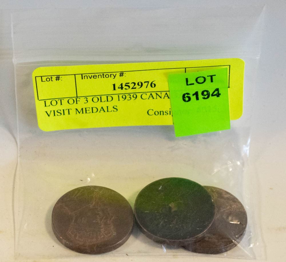 LOT OF 3 OLD 1939 CANADA ROYAL VISIT MEDALS
