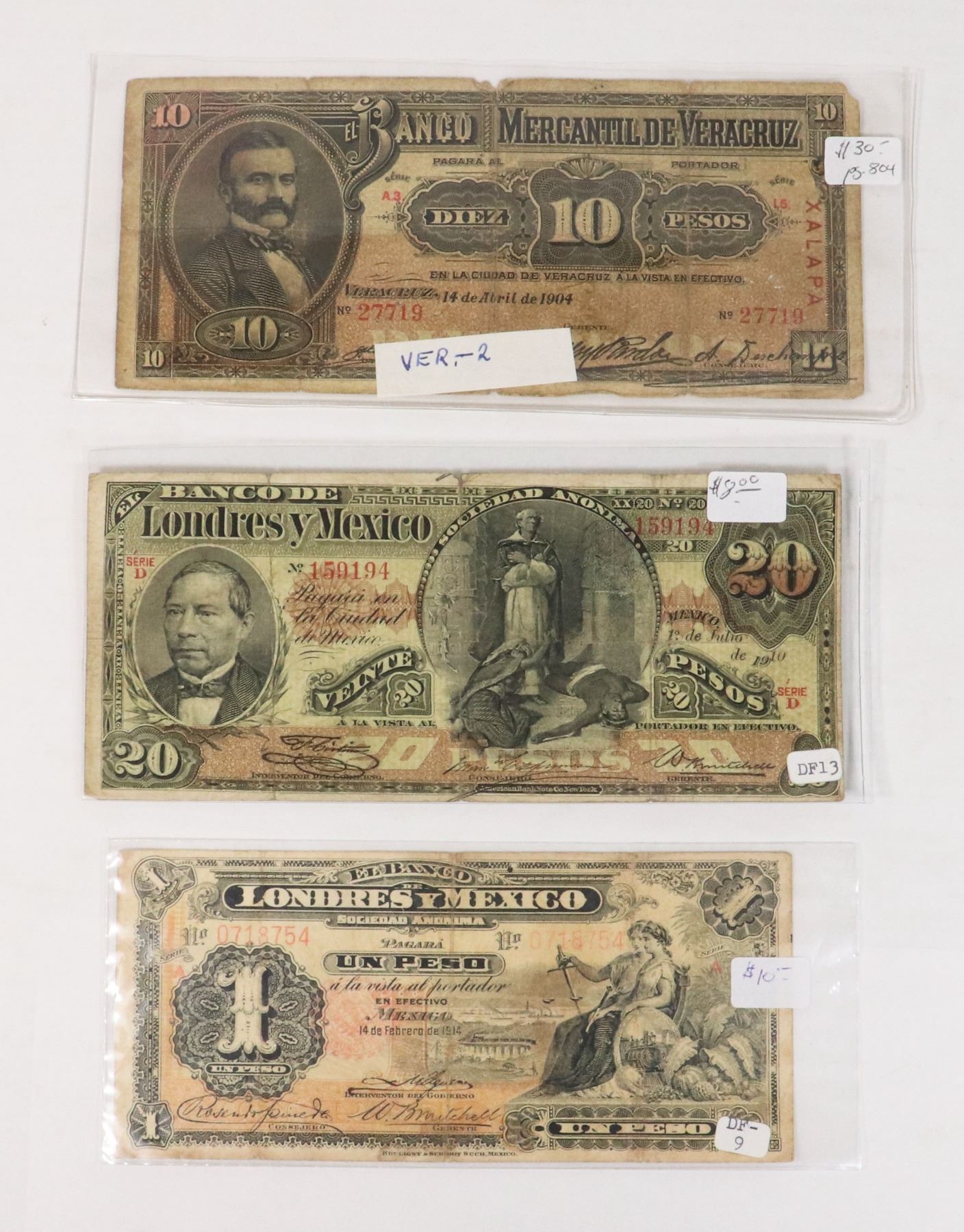 LOT OF 3 OLD EARLY 1900's MEXICAN BANK NOTES