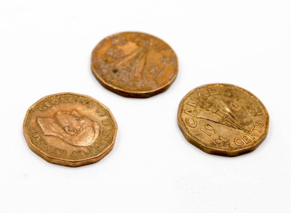 LOT OF 3 OLD WWII CANADA 5 CENTS TOMBAC NICKELS