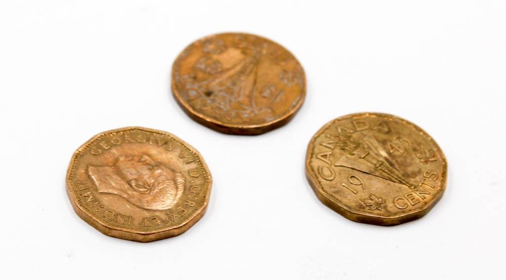 LOT OF 3 OLD WWII CANADA 5 CENTS TOMBAC NICKELS