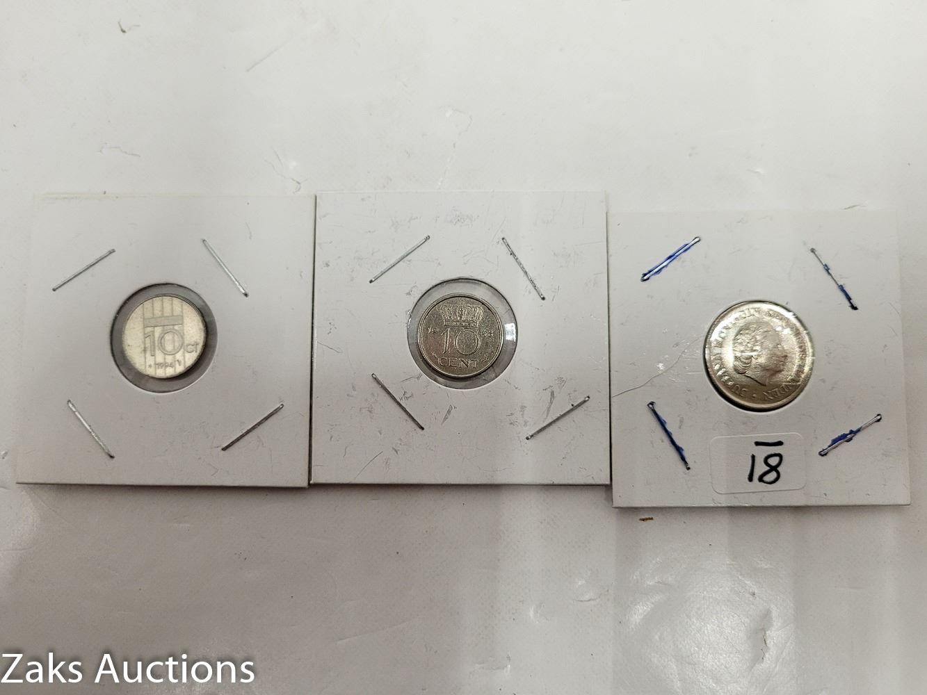 LOT OF 3 OLDER NETHERLANDS COINS (2X 10 CENTS, 1X 25 CENTS)