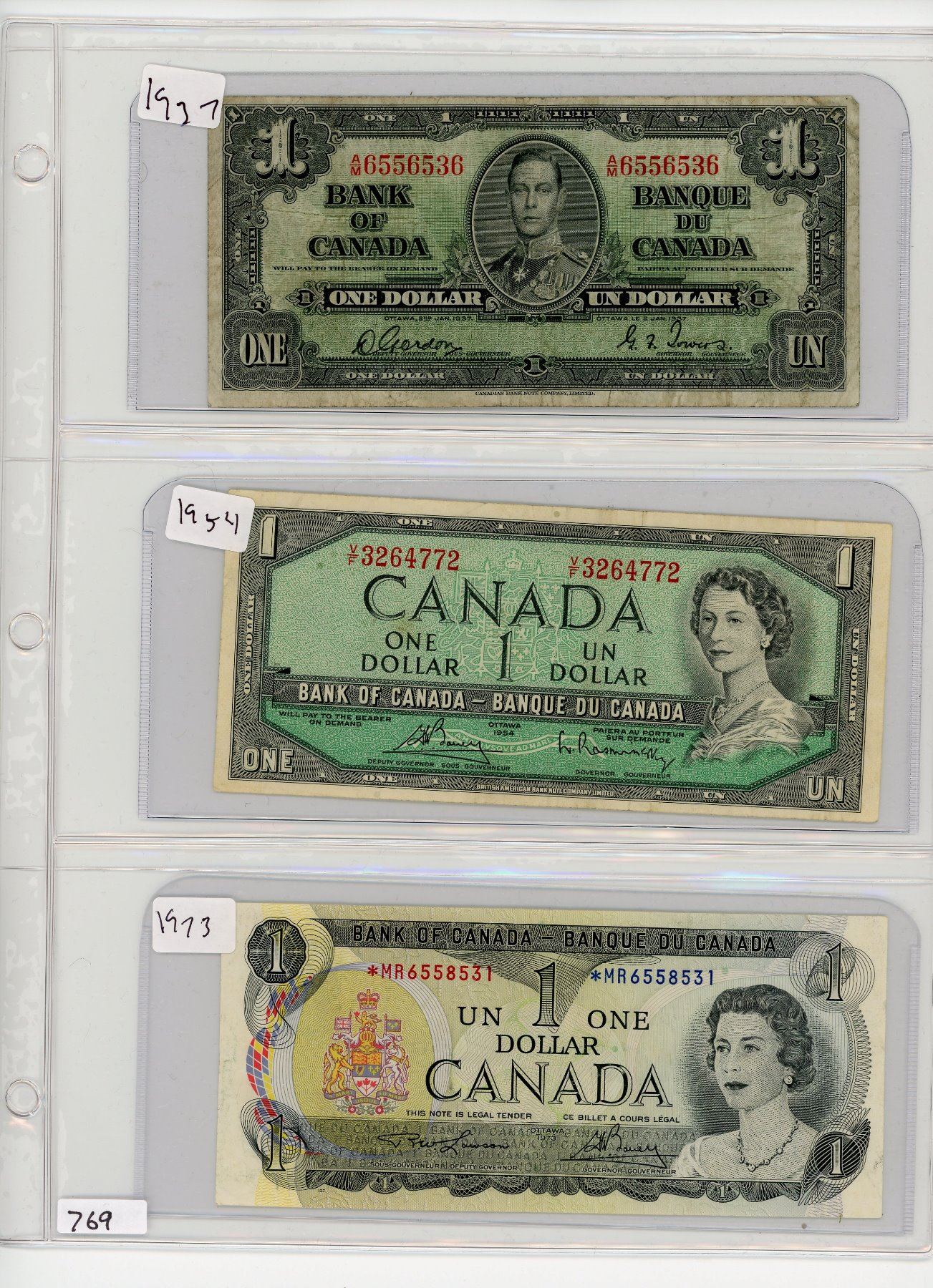 LOT OF 3 ONE DOLLAR BILLS ( CANADA) *1937, 1954, 1973-REPLACEMENT)