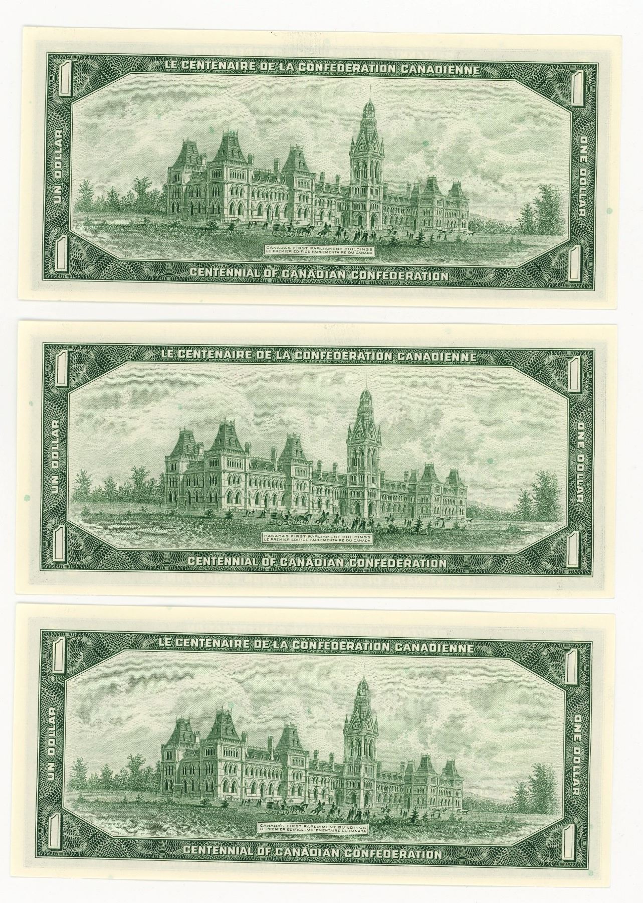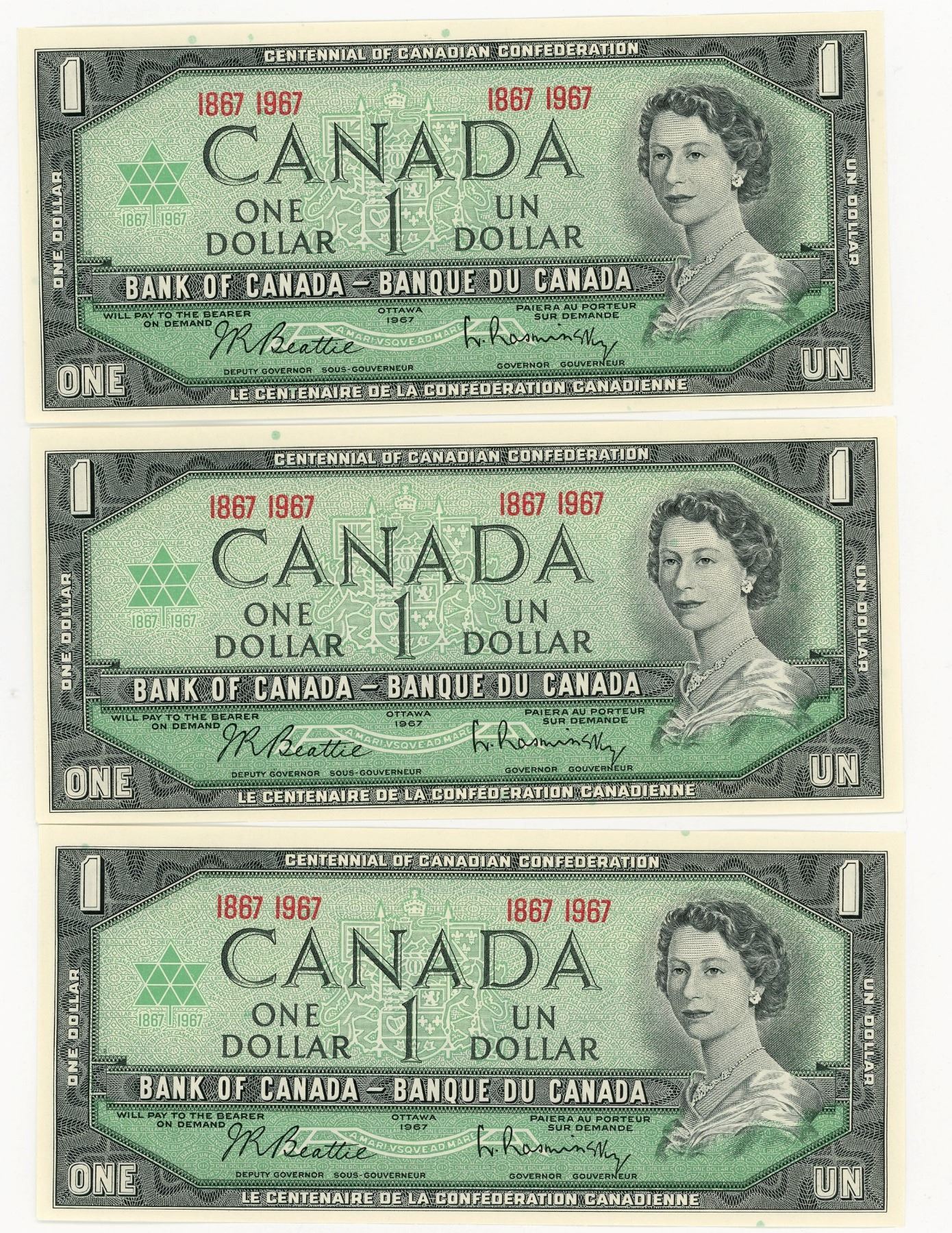 LOT OF 3 ONE DOLLAR BILLS (CENTENNIAL) *CANADA* (1867-1967)