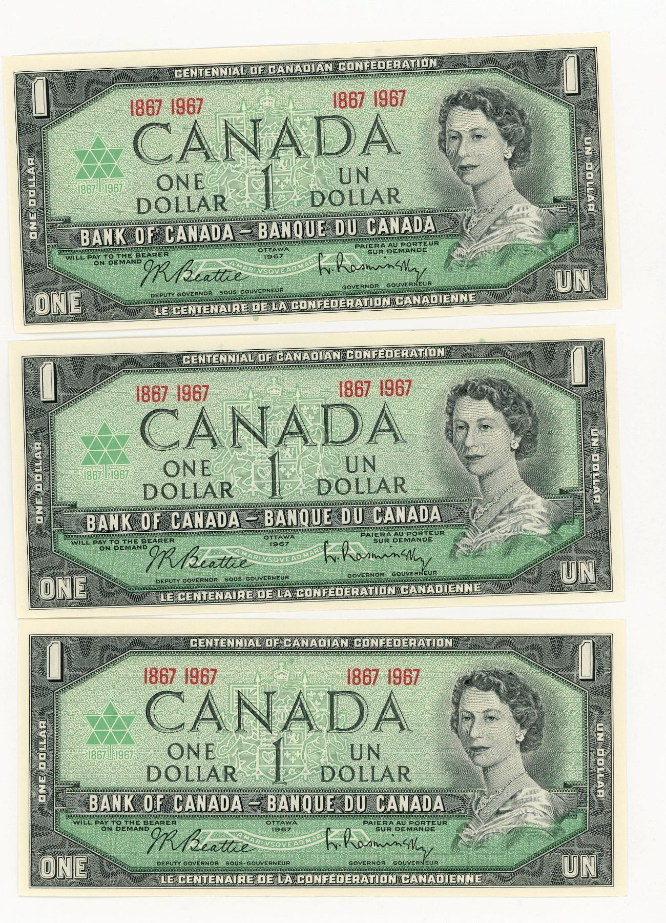 LOT OF 3 ONE DOLLAR BILLS (CENTENNIAL) *CANADA* (1867-1967)