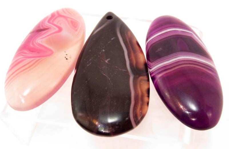 LOT OF 3 ONYX AGATE GEMSTONE PENDANTS