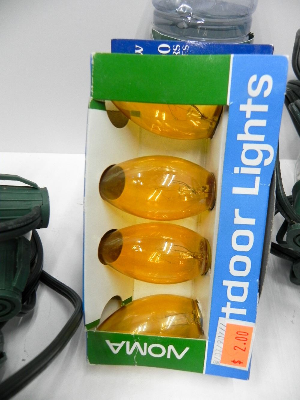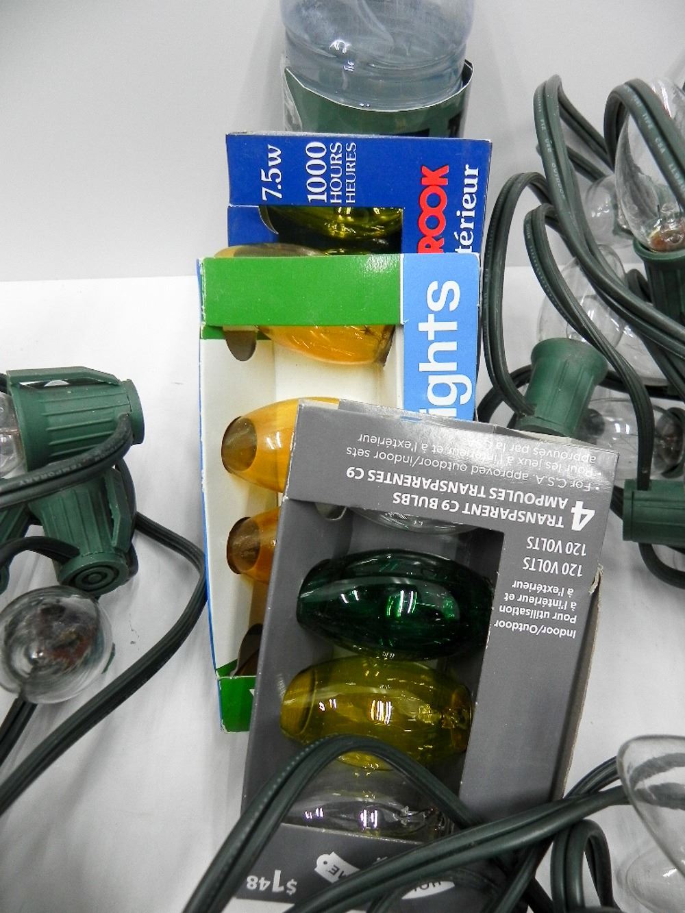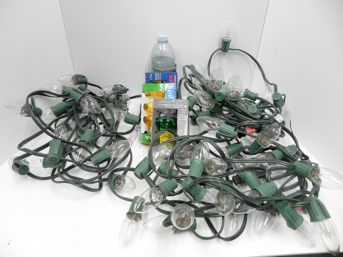 LOT OF 3 OUTDOOR LIGHT STRANDS WITH REPLACEMENT BULBS. TESTED
