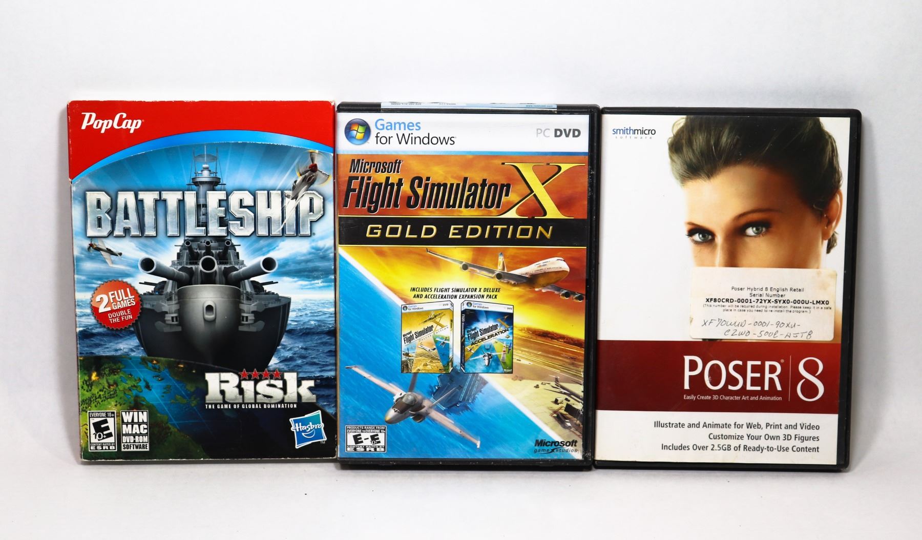 BATTLE SHIP BOARD GAME FLIGHT SIMULATOR X GOLD EDITION POSER 8***ITEM(S) LOCATED IN LETHBRIDGE ALBERTA. THIS ITEM QUALIFIES FOR FREE TRANSPORT TO EDMONTON SERVICE. WORLDWIDE SHIPPING AVAILABLE