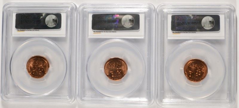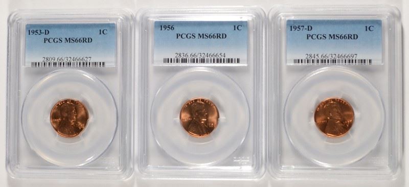 LOT OF ( 3 ) PCGS MS-66 RED LINCOLN CENTS, 1953-D, 1956 & 1957-D