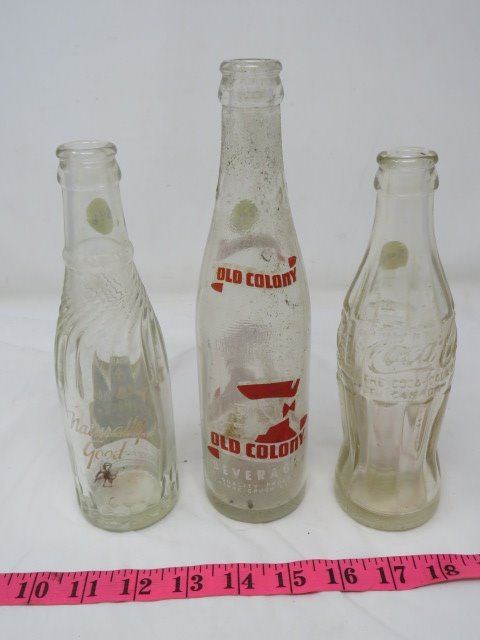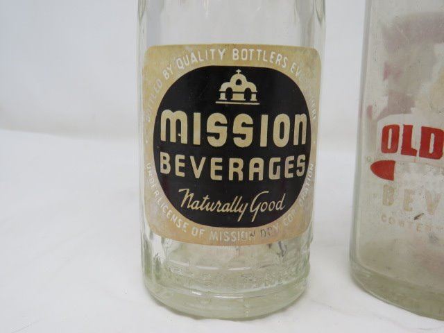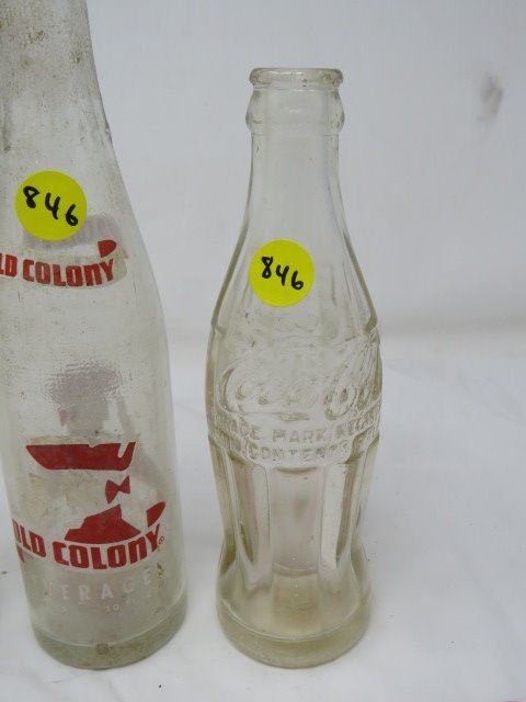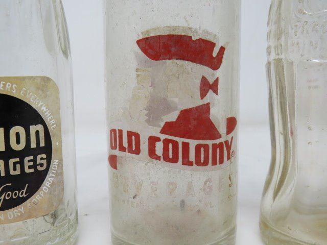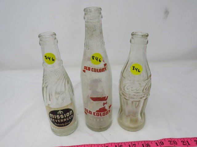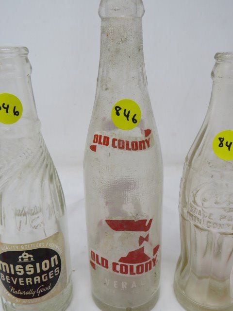 LOT OF 3 POP BOTTLES (OLD COLONY, MISSION, COCA-COLA)