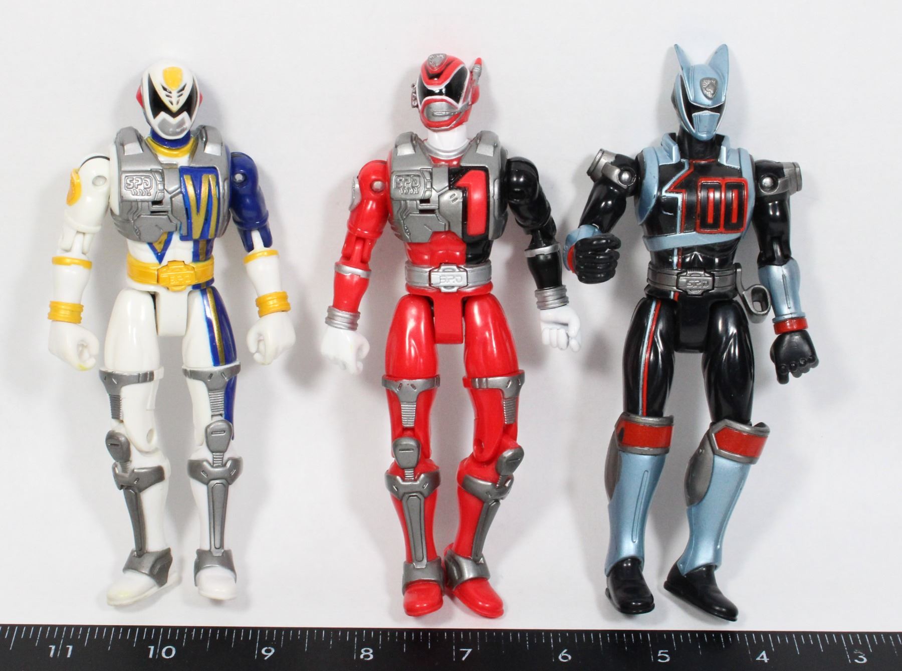 RANGERS. WHITE AND RED ARE WORKING SHADOW ONE IS NOT, MAY NEED BATTERIES CHANGED. ACTION FIGURES ONLY
