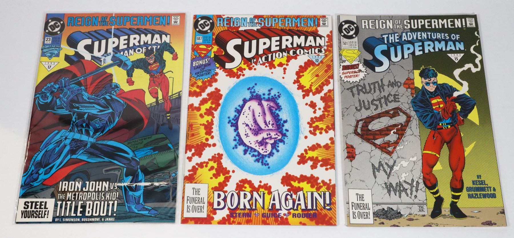 SUPERMAN IN ACTION COMICS #687 THE ADVENTURES OF SUPERMAN #501 SUPERMAN THE MAN OF STEEL #23***ITEM(S) LOCATED IN LETHBRIDGE ALBERTA. SMALL ITEMS ONLY ARE AVAILABLE FOR FREE TRANSPORT TO EDMONTON OFFICE (READ AUCTION DETAILS FOR MORE INFORMATION)