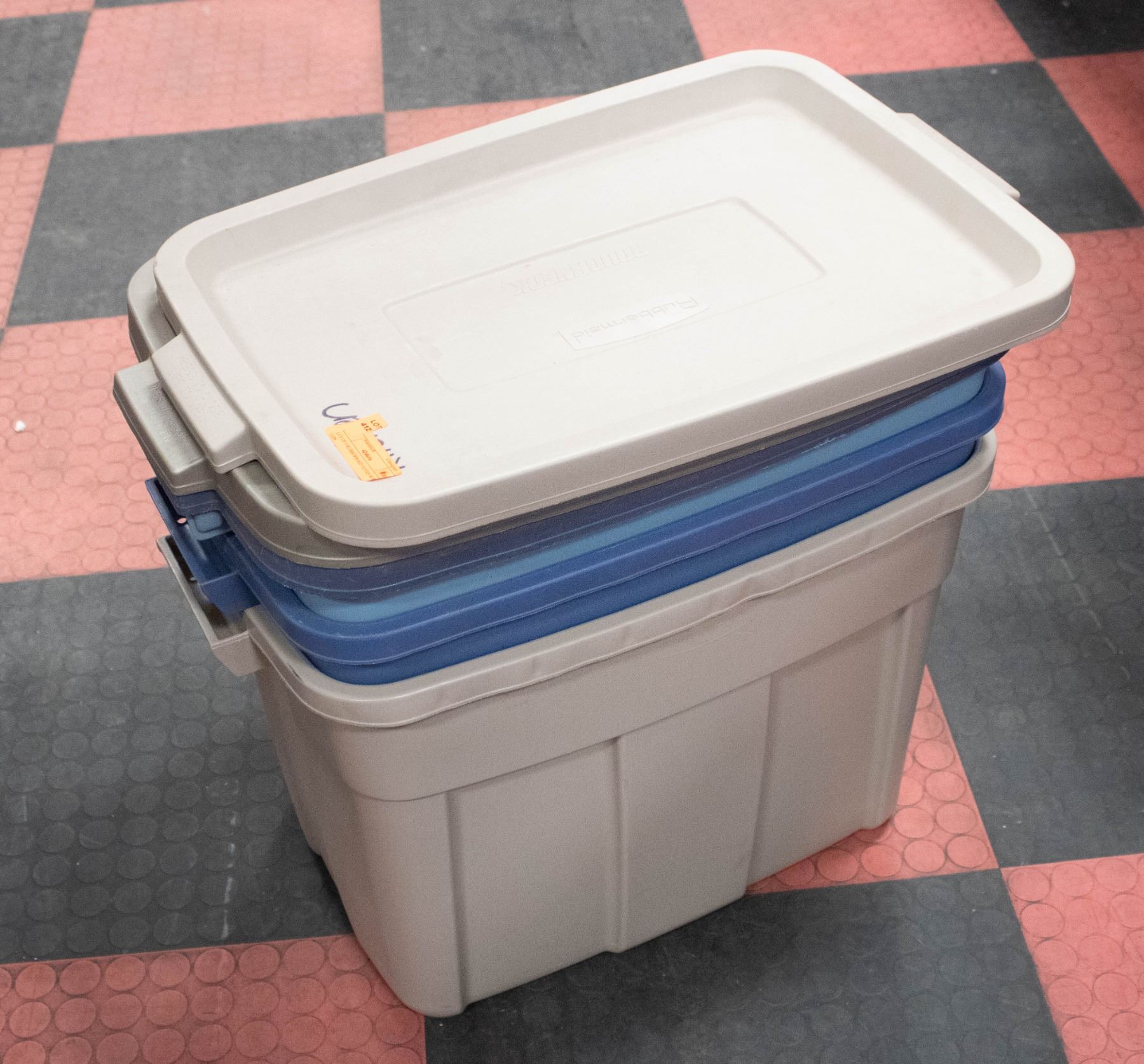 LOT OF 3 RUBBERMAID TOTES WITH LIDS