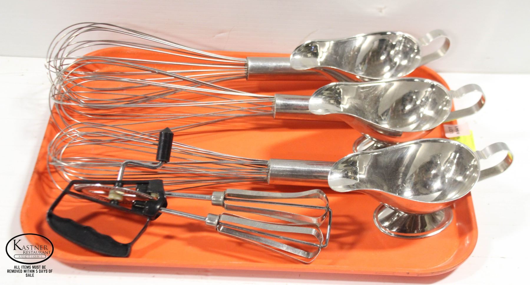 LOT OF 3 SAUCE BOATS, 3 WHIPS, AND HAND MIXER