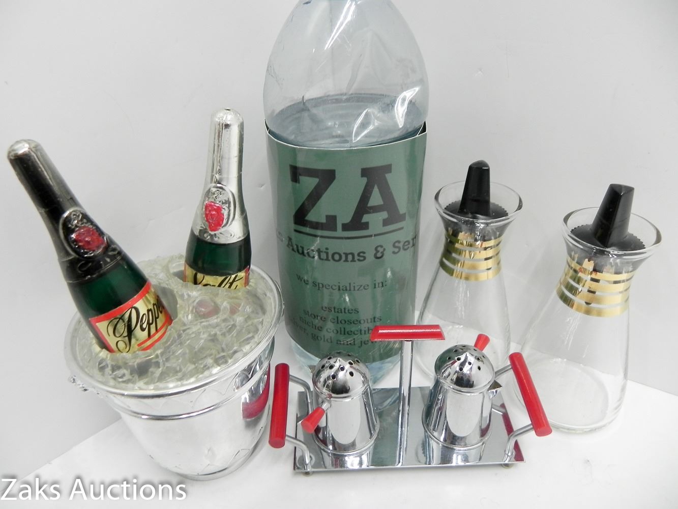 WINE CARAFE (GLASS), COFFEE STATION (METAL), CHAMPAGNE (PLASTIC)