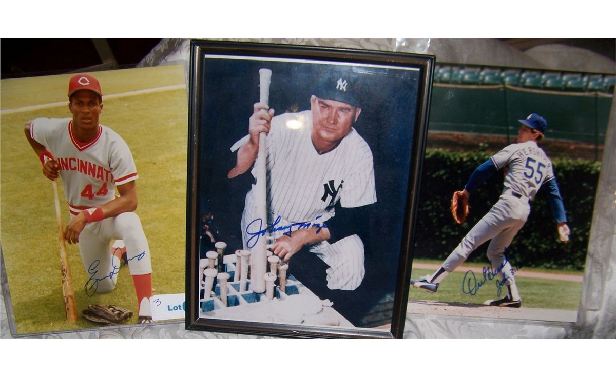 LOT OF (3) SIGNED BASEBALL PICTURES INCLUDING JOHNNY MIZE, ORAL HERSCHIER, ERIC DAVIS