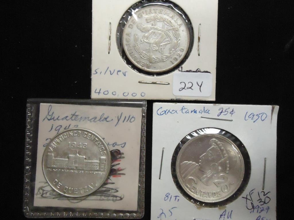 1929 1/4 QUETZAL SILVER, 1943 & 1950 25 CENTAVOS SILVER