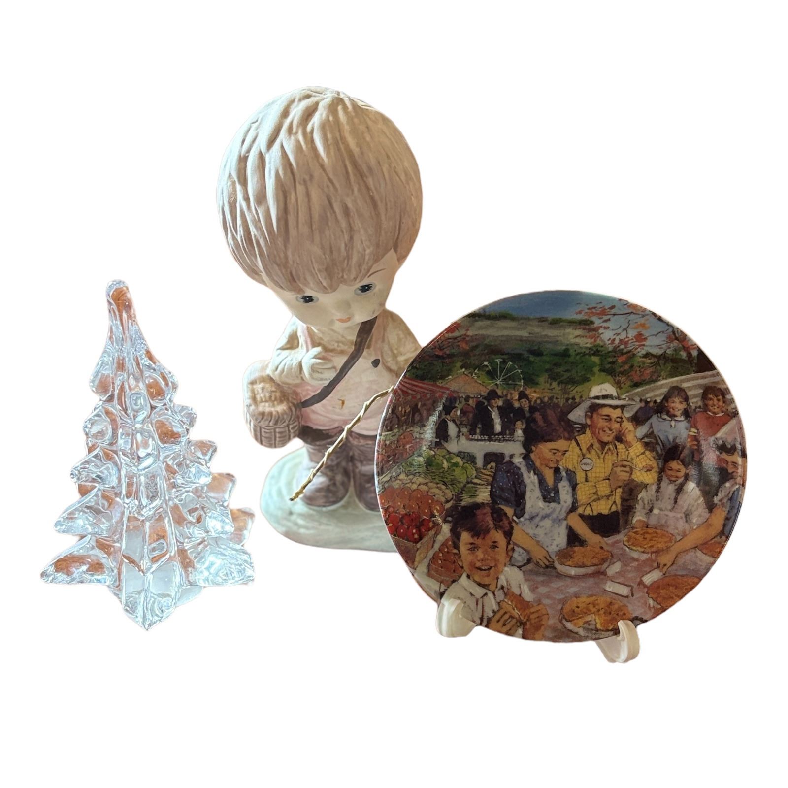 Includes boy fishing (Avon), glass tree and miniature plate on stand - boy 6 inches tall