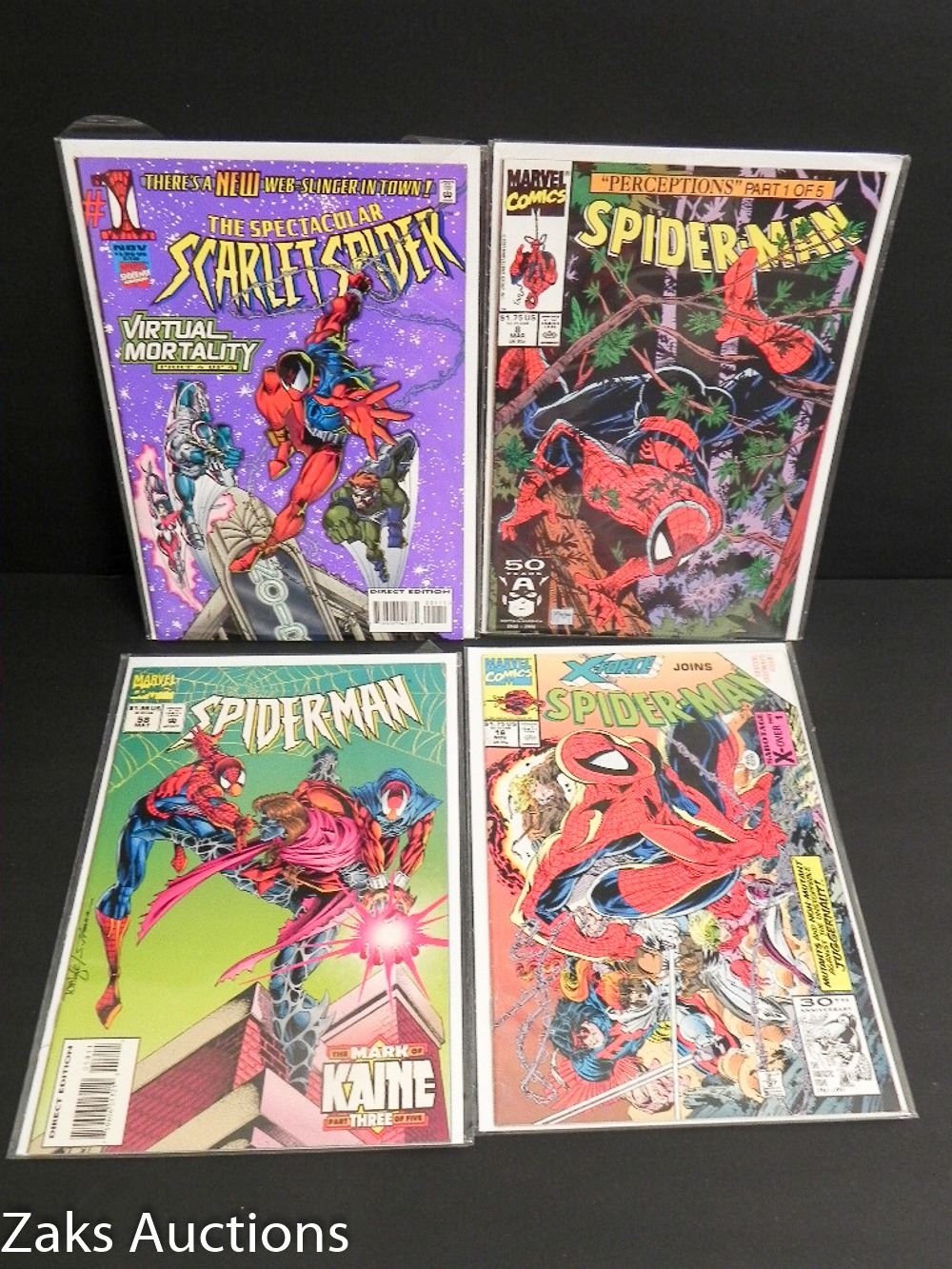 LOT OF 3 SPIDER-MAN AND 1 THE SPECTACULAR SCARLET SPIDER. NO'S 8, 16, 58 AND 1