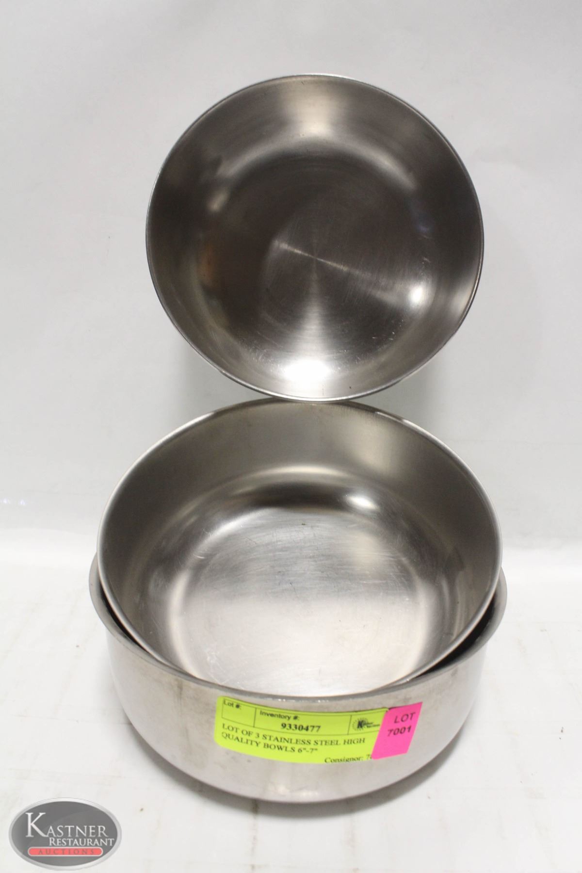 LOT OF 3 STAINLESS STEEL HIGH QUALITY BOWLS 6"-7"