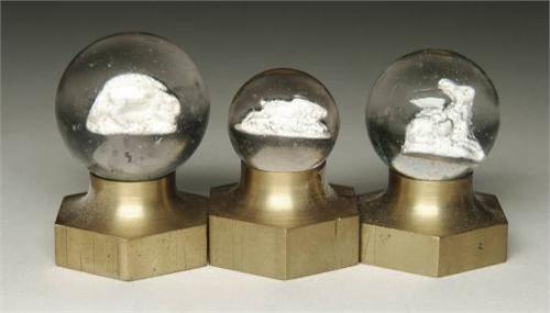 LOT OF 3 SULPHIDE MARBLES. Scarce 1 " Gila monster with 1 " sitting rabbit and 1" running rabbit sulfide marbles. CONDITION: Minor flakes to Gila monster, otherwise lot is very good. 1-4850-1 MC