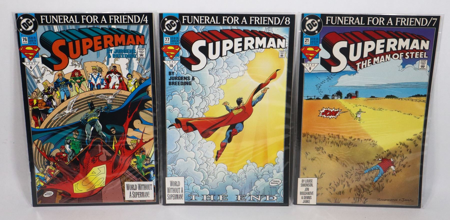 SUPERMAN #76, 77 SUPERMAN THE MAN OF STEEL #21***ITEM(S) LOCATED IN LETHBRIDGE ALBERTA. SMALL ITEMS ONLY ARE AVAILABLE FOR FREE TRANSPORT TO EDMONTON OFFICE (READ AUCTION DETAILS FOR MORE INFORMATION)