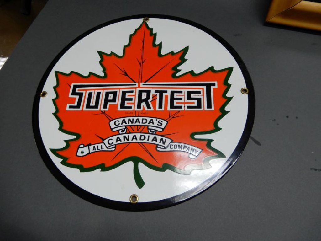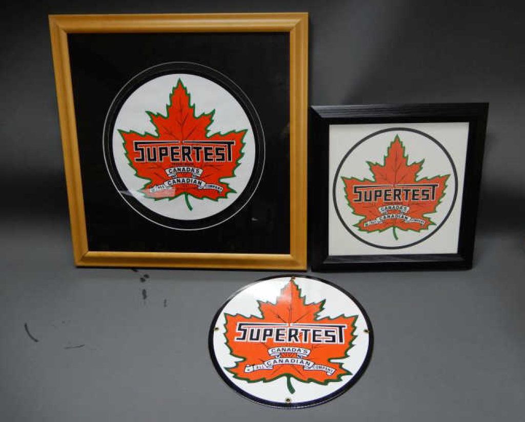 SSP SUPERTEST PUMP PLATE 11 3/4 - REPRO FRAMED SUPERTEST DECAL 20" X 20" FRAMED SUPERTEST PICTURE 13 1/2" X 13 1/2"
