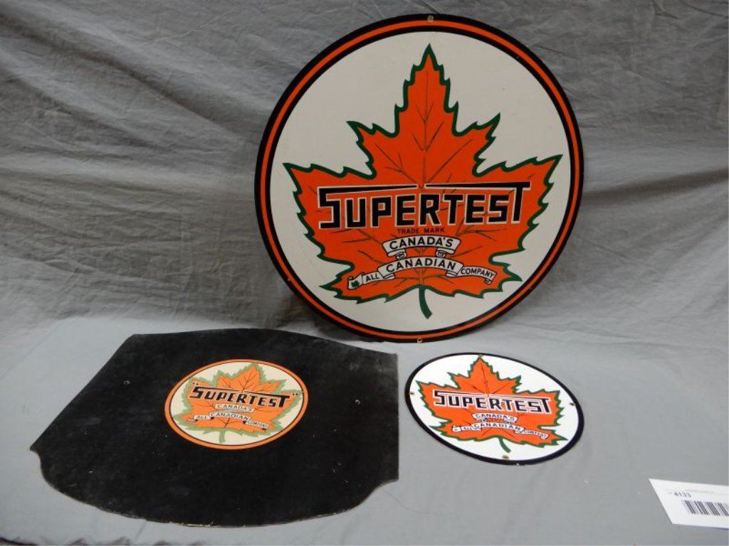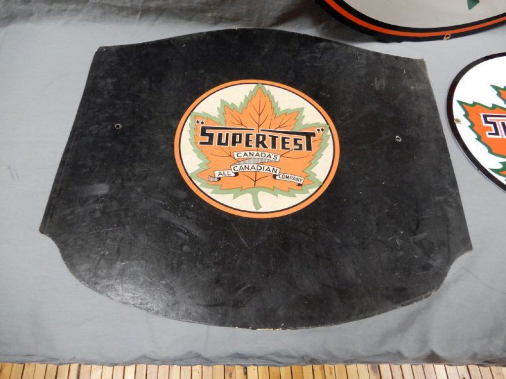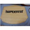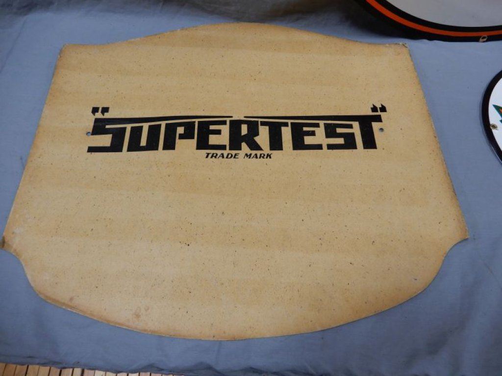 LOT OF 3 SUPERTEST SIGNS 24" MASONITE SIGN - 11 3/4" SSP PUMP PLATE - 21" X 18 3/4" D/S WAXED CARDBOARD SIGN INSERT LOCATION: UPPER LEFT