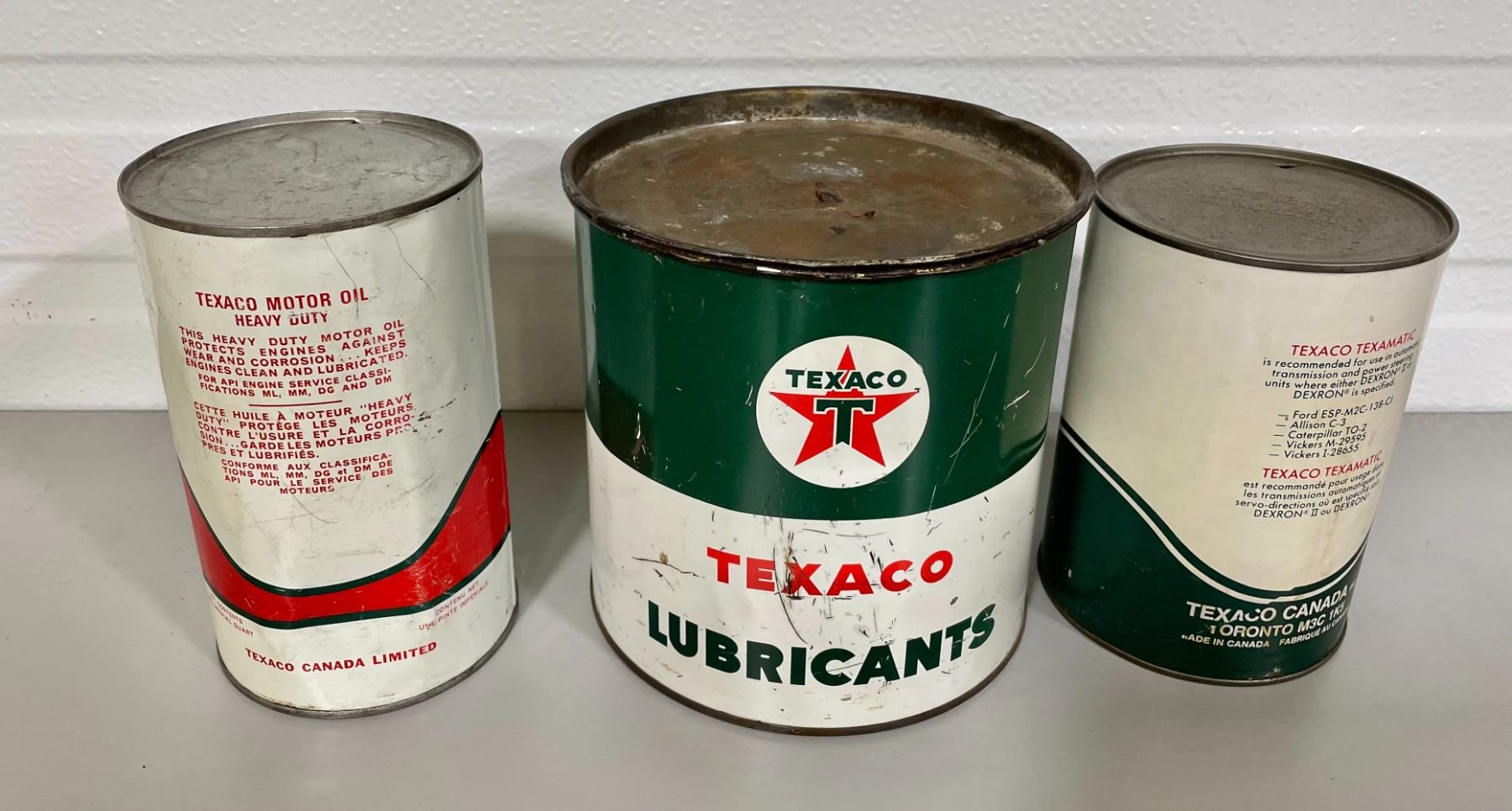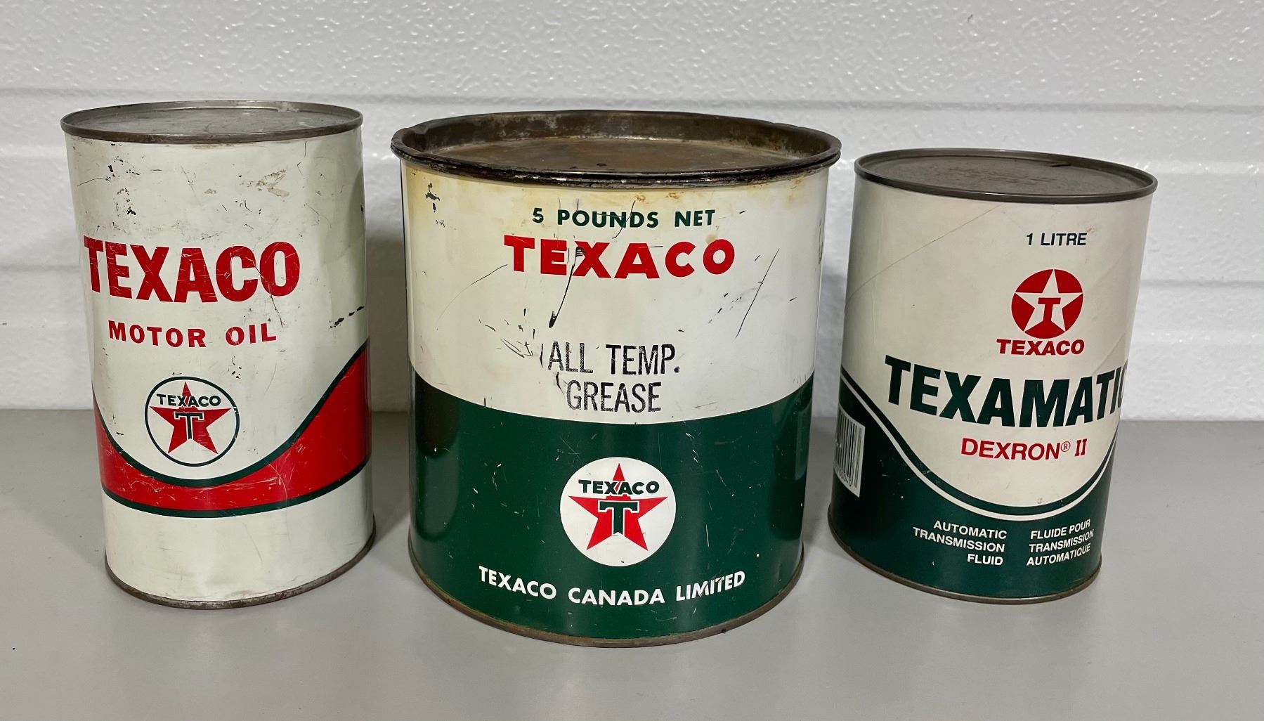 LOT OF 3 TEXACO CAN - OIL / GREASE W/ CONTENTS