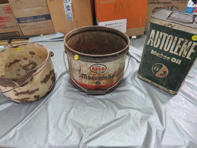 LOT OF 3 TINS (AUTOLINE, ESSO PAIL, POT)