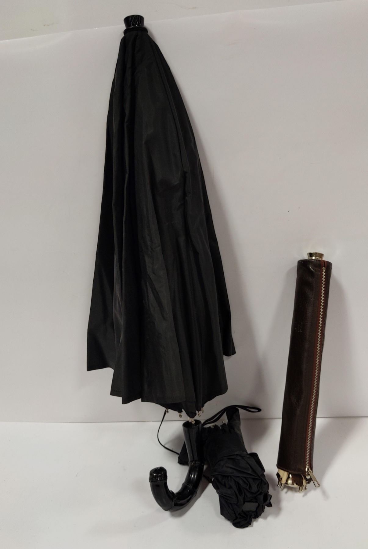 LOT OF 3 UMBRELLAS ONE WITH LEATHER CASE