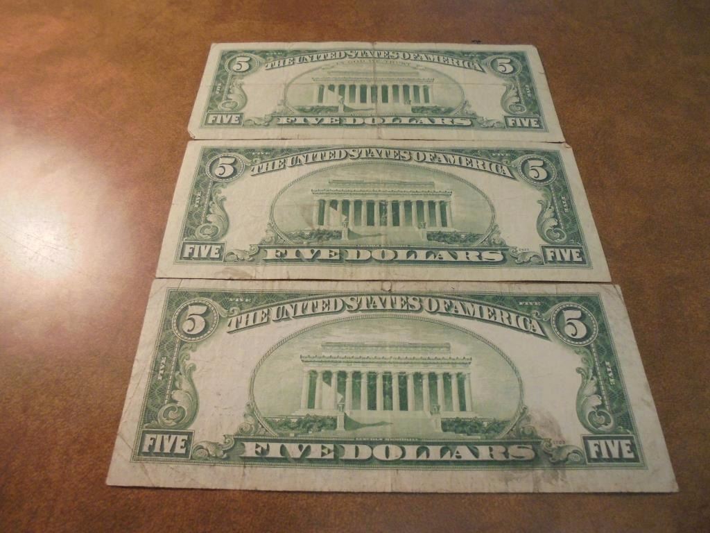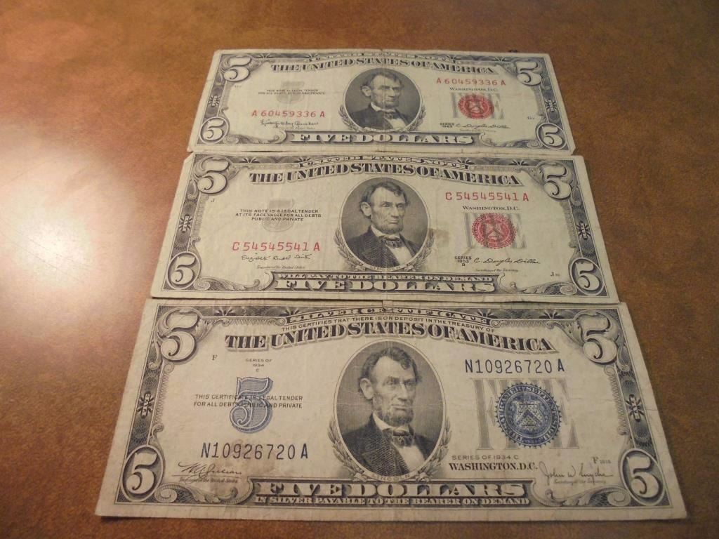 1934-C SILVER CERTIFICATE BLUE SEAL, 1953-B & 1963 US NOTES RED SEALS