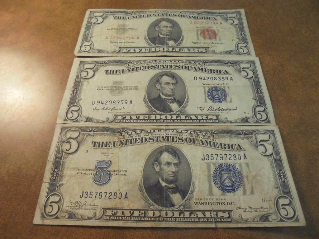 1934-A & 1953-A SILVER CERTIFICATES BLUE SEALS AND 1963 US NOTE RED SEAL