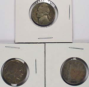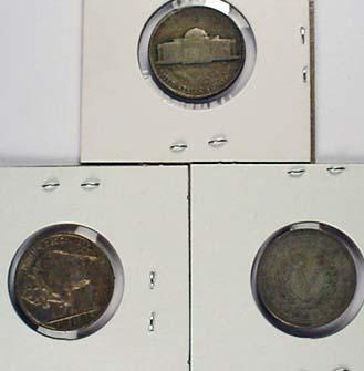LOT OF 3 US NICKELS - 1907 V Nickel, 1916 Buffalo Nickel and 1945-S Jefferson Nickel