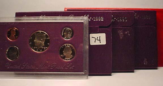 LOT OF 3 US PROOF SETS AND BICENTENNIAL SET - Proof Sets are: 1989, 1990, 1992 and the 1976 Bicentennial Silver Unc. Set