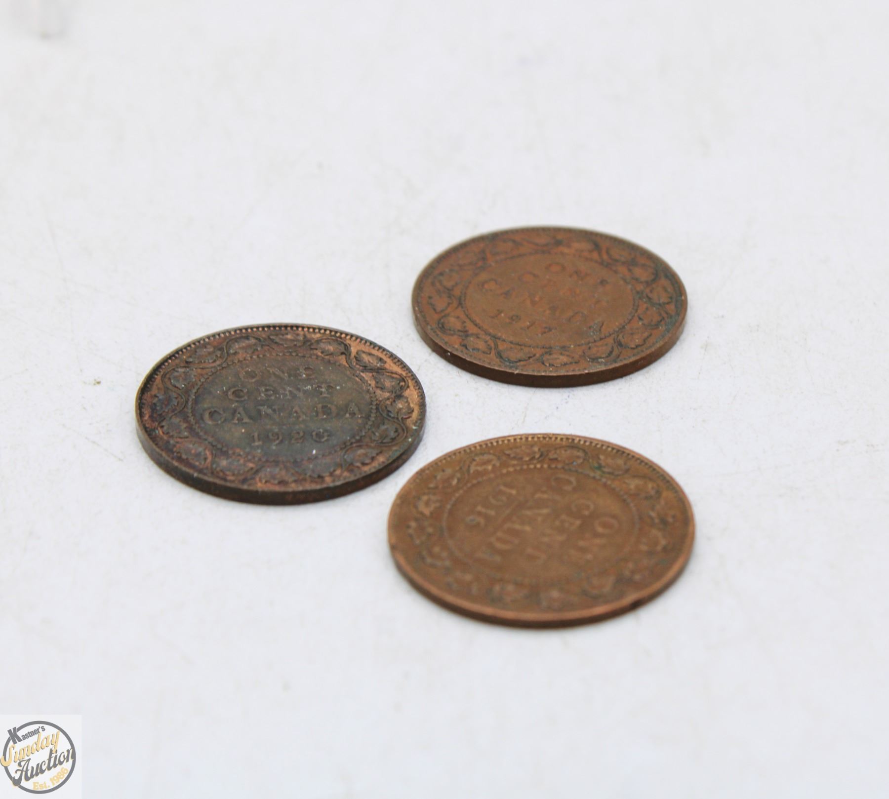 LOT OF 3 VARIOUS OLD CANADA LARGE 1 CENT COINS
