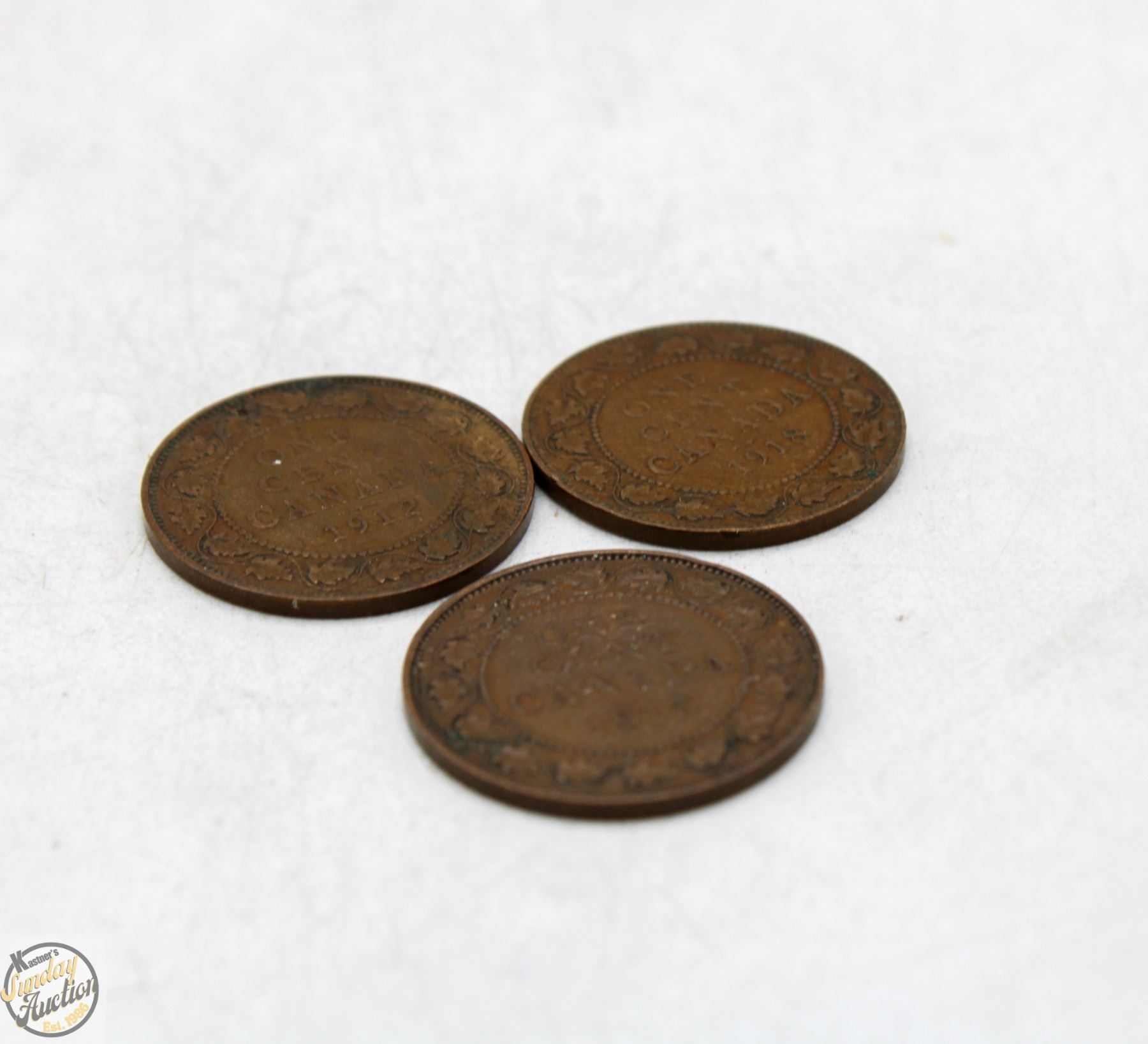LOT OF 3 VARIOUS OLD CANADA LARGE 1 CENT COINS