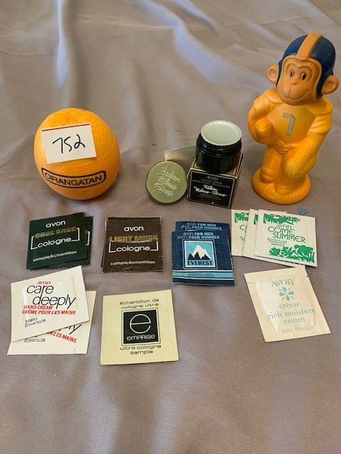 LOT OF 3 VINTAGE AVON PRODUCTS, 13 SEALED SAMPLE PACKETS