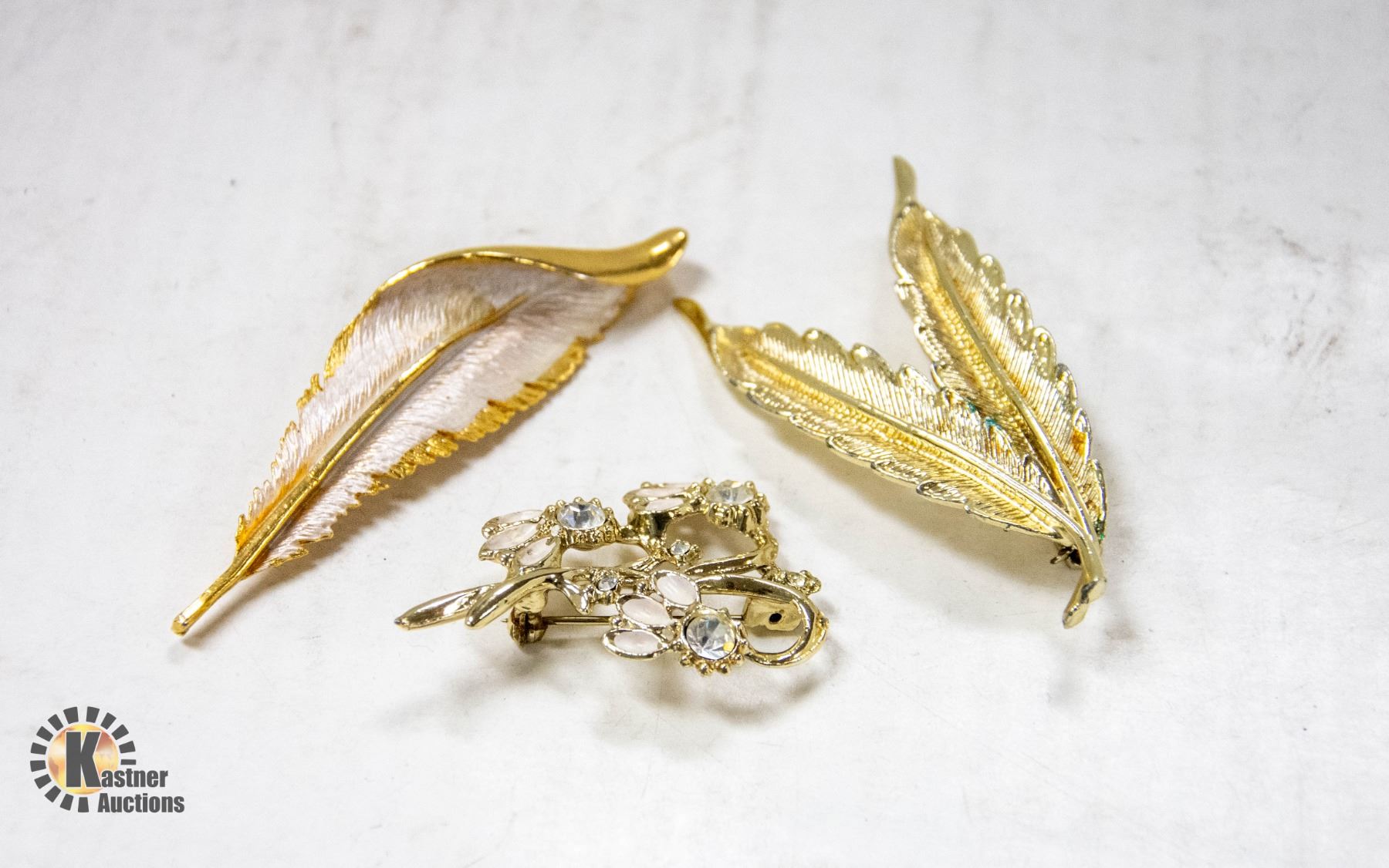 LOT OF 3 VINTAGE BROOCHES AS IS