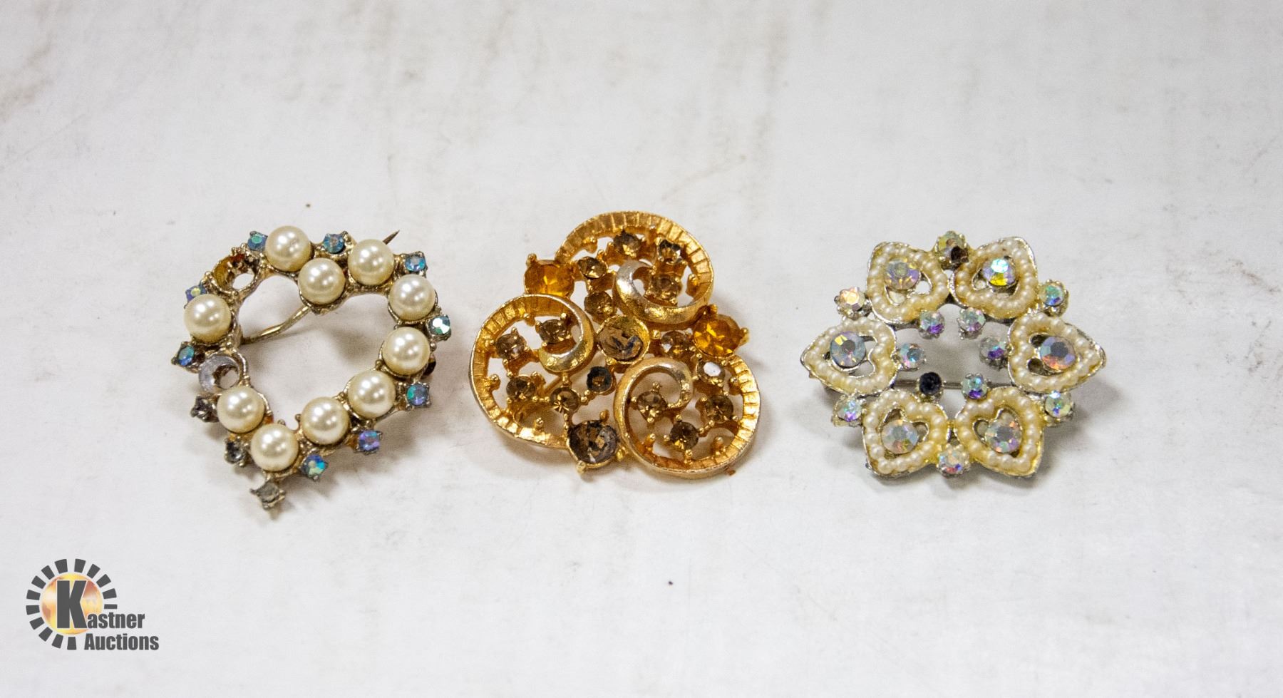 LOT OF 3 VINTAGE BROOCHES AS IS