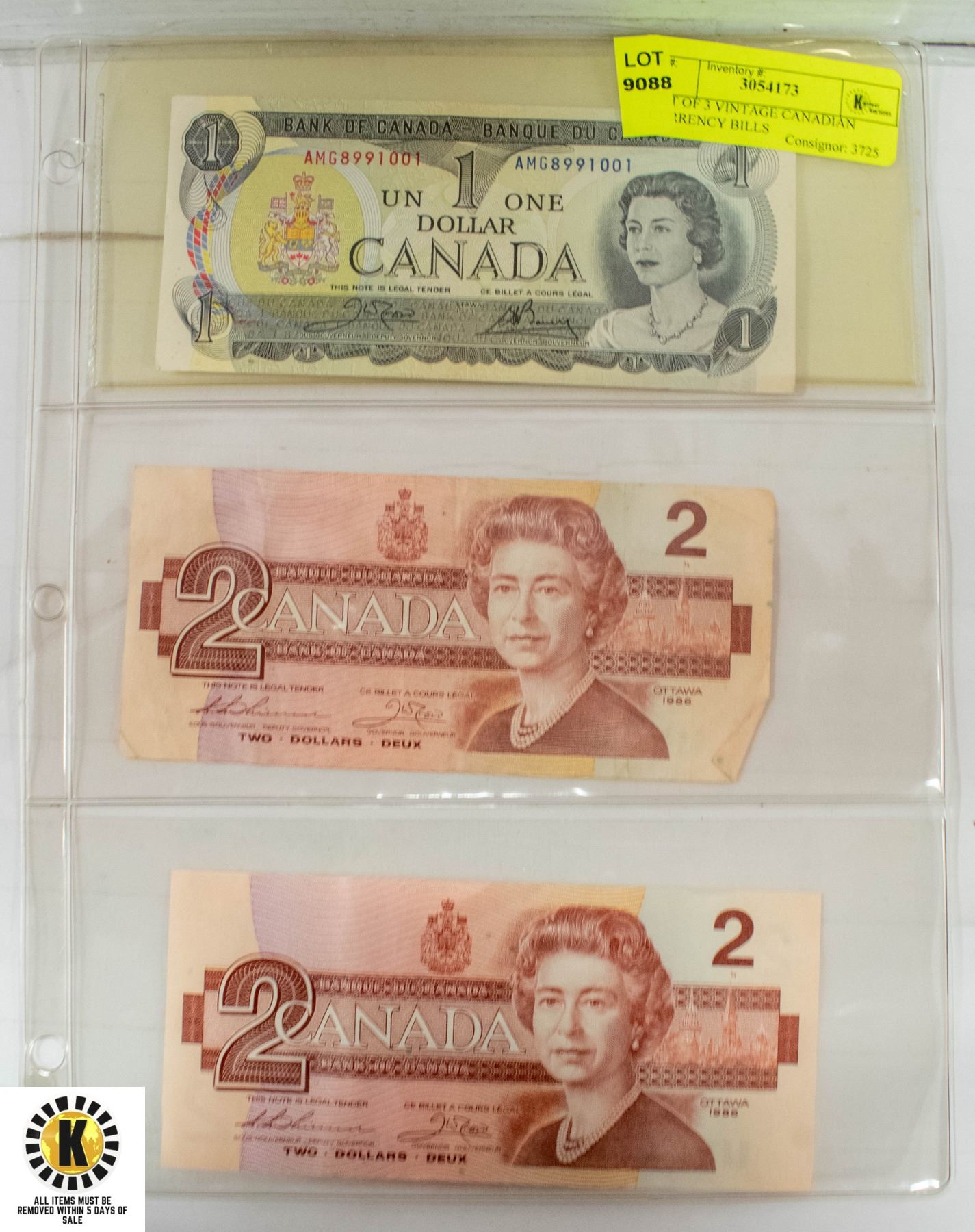 LOT OF 3 VINTAGE CANADIAN CURRENCY BILLS