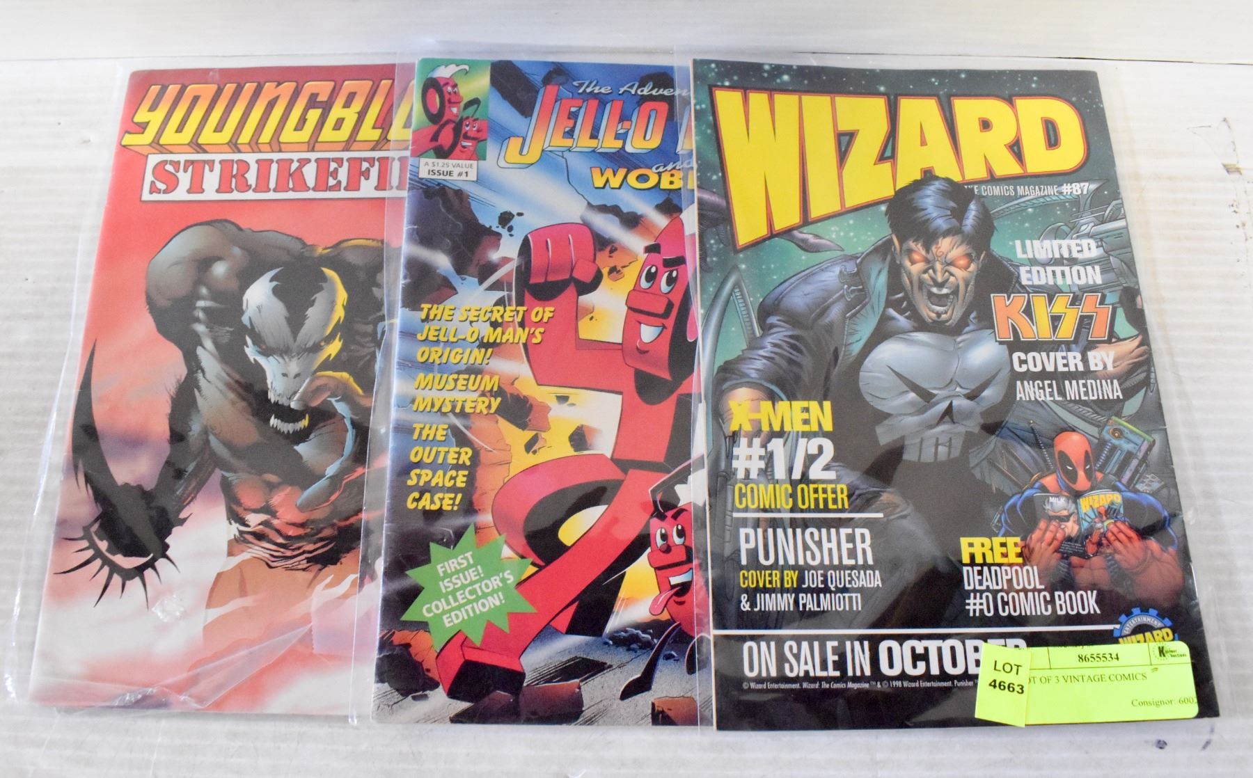 1993 STRIKEFILE, 1991 JELLO MAN, 1998 WIZARD KISS EDITION